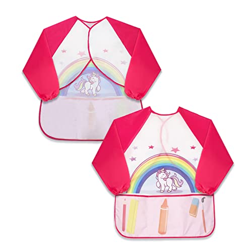 XIXKOLYU Grembiule da pittura impermeabile per bambini, per giocare, aula, fai da te e pittura, unicorno rosa