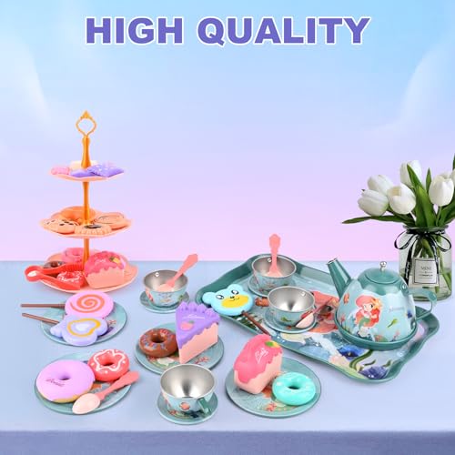 【Divertimento infinito】Questo set da tè è progettato per il gioco di finzione, perfetto per le decorazioni della stanza, i regali di compleanno e altre occasioni a tema sirena.