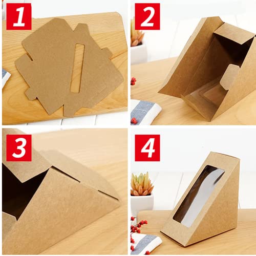 XIZHI Confezione da 50 scatole per torte usa e getta, senza BPA, piccola scatola per sandwich a forma di sandwich, 11,9 cm, con finestra, colore: Marrone