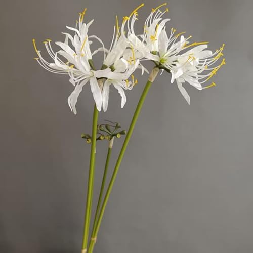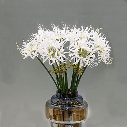 XIZHI Fiori artificiali di giglio di ragno 5 steli, bulbi di Lycoris, gigli di ragno, fiori artificiali con gambo lungo, vero tocco, per fotografia, hotel, giardino, decorazione (bianco)