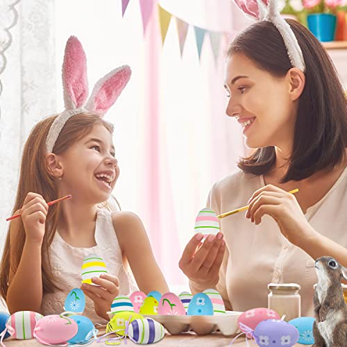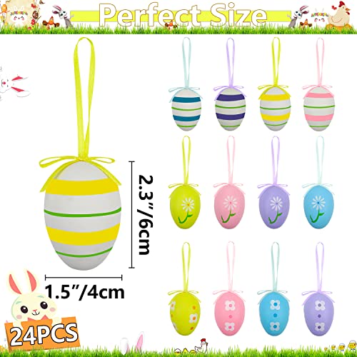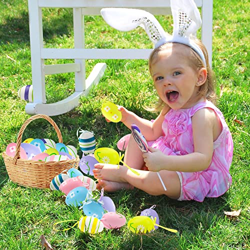 XJLANTTE 24 Uova di Pasqua Appese - Uova di Pasqua Colorate in Plastica Ornamenti per Alberi da Appendere per la Scuola, Ufficio, Casa, Festa di Pasqua, Decorazione da Appendere