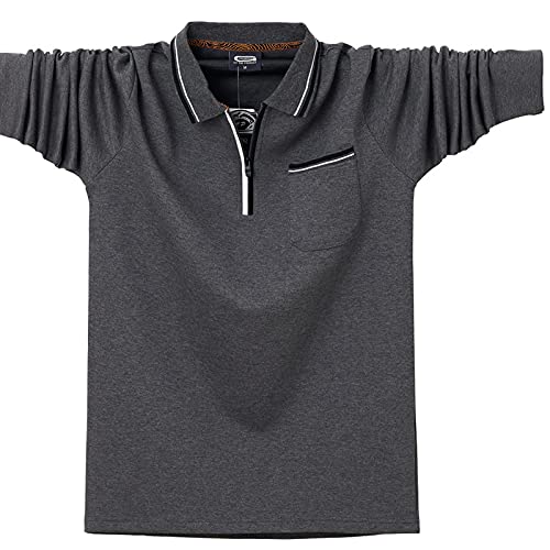 XJOE Casual punta a maniche lunghe uomo polo classico cotone manica lunga polo per uomo 2130, Grigio scuro, 3XL