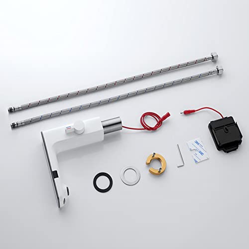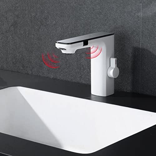 XJTNLB Rubinetto con Sensore Temperatura Rubinetto ad Infrarossi, Miscelatore Acqua Calda e Fredda per Lavabo, Bianco