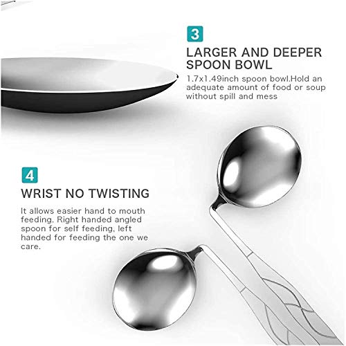 ★ L'angolo della testa del cucchiaio è progettato ergonomicamente e offre molto comfort per gli adulti. Ideale per la cura del paziente in un ambiente domestico o clinico per aumentare la funzionalità mentre si mangia e acquisire sicurezza.