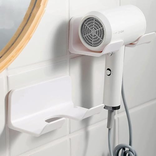 Xkfgcm 2 Pz Porta-phon senza foratura, Porta Asciugacapelli a Muro, Porta Phon da Muro Supporto autoadesivo, Supporto per Asciugacapelli da Parete Porta Asciugacapell per Bagno Parrucchiere (bianco)
