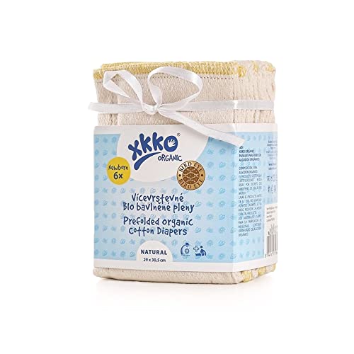 XKKO - Prefolds - 100% cotone biologico - Birds Eye - 6 pezzi - diverse dimensioni Dimensioni Newborn (orlo giallo) - 29 x 30,5 cm (2-5 kg)