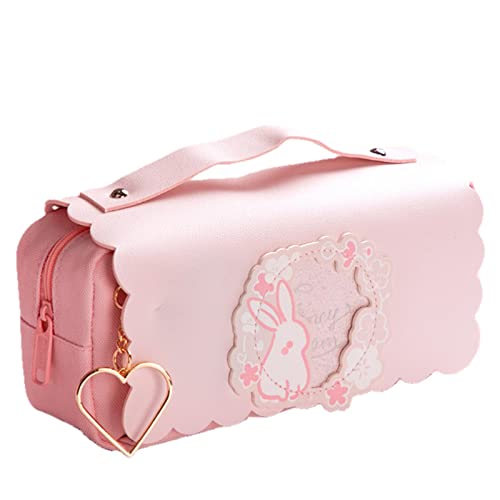 XKUN Astuccio Borsa A Matita Pu Cuoio Cuoio Cuoio Custodia Kawaii Cancelleria Governante Sacchetto per La Scuola Ragazza Dolce Scatola Regalo Scatola Regalo-Pink Rabbit