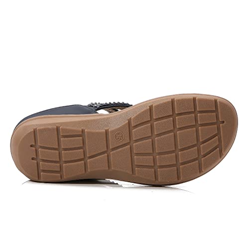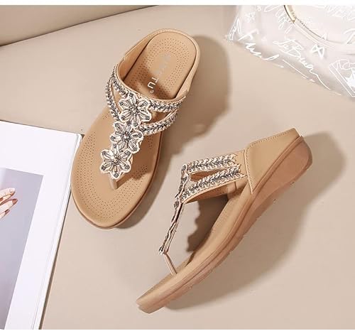 XKUN Infradito Donna Donne Summer T-Strap Sandali di Cuneo Romano Vintage Strass Floral Strass Soft Sole Shoes Beach Shoes-Apricot,35