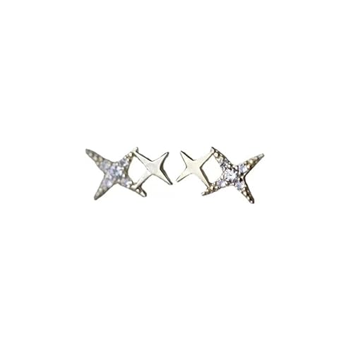 XKUN Orecchini a Bottone Argento Sterling Micro Intarsiato Cristallo A Quattro Punte di Placcatura A Quattro Punte Orecchini Donne Piccole Gioielli di Banchetto Carino-Stud Earring,Silver