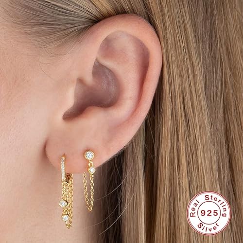 XKUN Orecchini 1 Pair Hoop Orecchino 925 Argento Sterling Single Hole Orecchino Cubico Zirconia Luna Stella Cuore Fiore Fiore-26