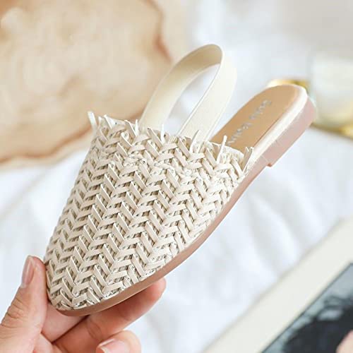 XKUN Pantofole Donna Summer Bambini Rattan Sandali Intrecciati Ragazze Flat Casual in The Kids Home Calzature per Ragazze Sandali-M,Size 32