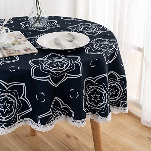 Xlabor Tovaglia lavabile, rotonda, con pizzo, impermeabile, in tessuto, facile da pulire, per giardino, camera da letto, colore blu scuro, 140 cm