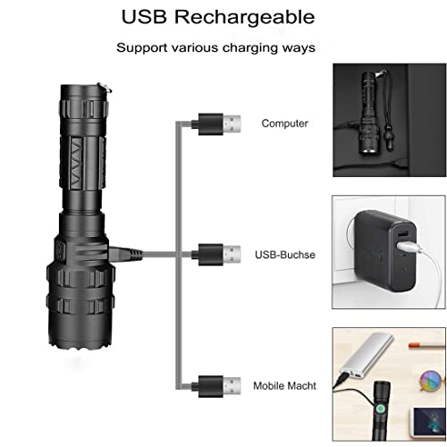 XLENTGEN Torcia Led Luce Verde da Caccia 2000 Lumens Torcia Potente Ricaricabile Impermeabile 5 Modalità Torcia Tattica Hunting Flashlight con Pressostato per Escursionismo, Pesca