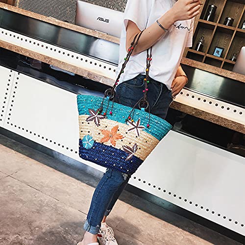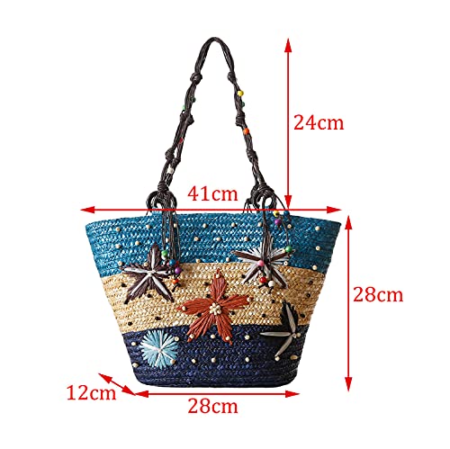 XLHH Borsa a tracolla da donna in paglia, colorata, con manici, in rattan, estiva, spiaggia, mare, stella marina, Colore: rosa., 41/12/28