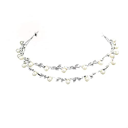 XLKJ Fascia da Sposa con Strass,Perla Argento Nozze Cerchietti Doppio Fascia per Capelli da Sposa(Argento)