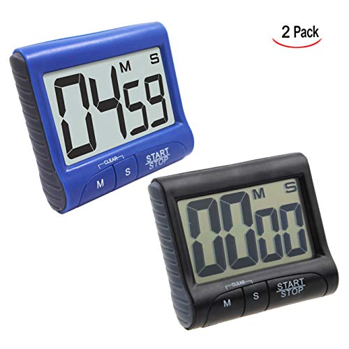XLKJ 2 pezzi Timer da Cucina,Timer Digitale da Cucina LCD Display Magnetico Digitale Timer con Clip(Nero, Blu)