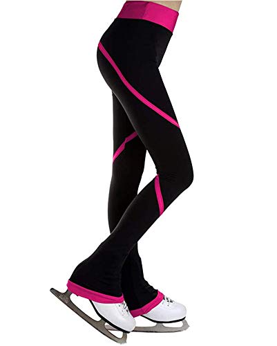 XLLHY Bambini Vita Contrasto Pantaloni Pattinaggio Artistico Nero Cristallo a Spirale Pattinaggio sul Ghiaccio Leggings in Pile Collant,Fuschia,150cm