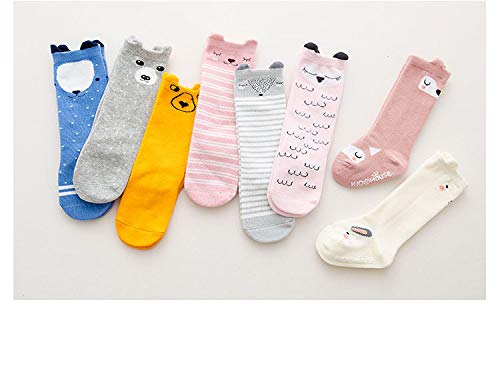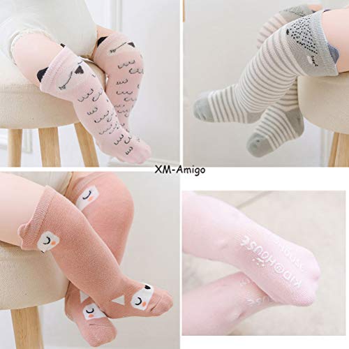 XM-Amigo 8 paia di calzini antiscivolo al ginocchio calze alte al ginocchio calze lunghe bambino principessa cotone maglia calze a01 2-4 anni