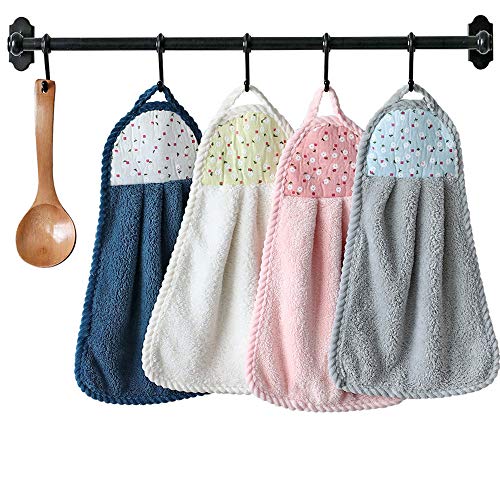 XM-ZHHY 4 asciugamani da appendere per asciugare le mani, spesso in velluto corallo, asciugamano ad asciugatura rapida, panno morbido per cucina, bagno (24 x 39 cm)