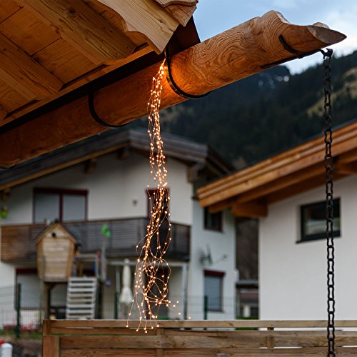 XMASKING Cascata ciuffo Metal 1,2 m, 300 microled Bianco Caldo Tradizionale, Luce Fissa, Cavo Metal Rame, 5V, Esterno
