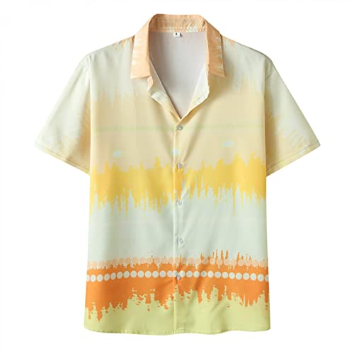Xmiral Camicia Maniche Corte Camicie Casual da Uomo Stampate a Manica Corta da Uomo Summer Tops (1- Giallo, L)
