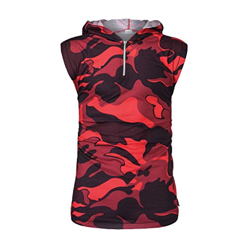 Xmiral Canottiera Cappuccio Uomo Canotta Senza Maniche Smanicata Veste Senza Maniche Canotta Maglietta per Bodybuilding per Allenamento Muscoli (Rosso, XL)