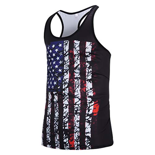 Xmiral Canottiera Smanicata da Palestra da Uomo Bodybuilding Senza Maniche Bandiera Stampata S Nero