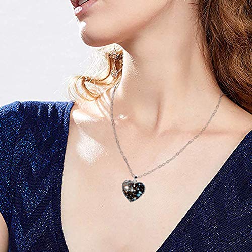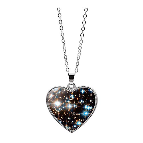 Xmiral Collana con ciondolo Sistema solare Planet Galaxy Double Sided Glass Universe Heart (L,D)