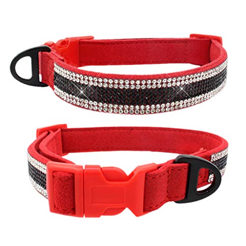 Xmiral Collare per Cane Regolabile Collare Regolabile Cucciolo di Gatto Collo di Strass (2.5 * 52-63cm,3Rosso e Nero)