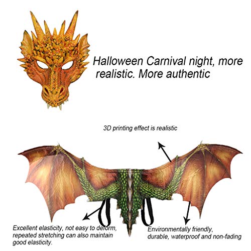 Xmiral Farfalla Angelo Ali di Farfalla Scialle Mantello Butterfly Wings Accessorio Ala Ala Maschera Animale Cosplay Costume Dinosauro di Halloween (1x Wings + 1x Maschera di Drago,Giallo)