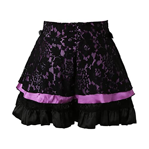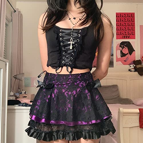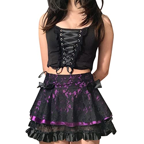 Xmiral Gonne a Pieghe in Pizzo da Donna Gonne Corte a Vita Alta con Lacci Kawaii a Vita Alta Streetwear Rave Gonna