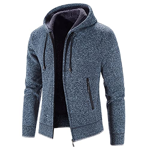 Xmiral Maglione Pullover Uomo Invernale Casual Cardigan Giacca cardigan maglione con cappuccio uomo inverno manica lunga più velluto (3XL,1blu)