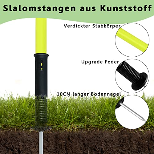 Set di 6 aste per slalom. Lunghezza: circa 150 cm/180 cm, diametro circa 25 mm, lunghezza picchetti 100 mm, colore: giallo fluorescente, materiale: plastica.