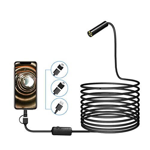XMZWD Telecamera per Ispezione Endoscopio Android Windows, 5.0MP Autofocus 3-in-1 USB Type-C Telecamera per Tubo di Scarico Periscopio Impermeabile, Cavo Semirigido, con 4 Luci LED