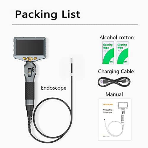 XMZWD Videocamera per Ispezione Video con Periscopio Articolato da 8,5 Mm/6,2 Mm con Endoscopio Industriale da 180 Gradi IPS LCD da 5 Pollici, con LED Regolabili, Batteria da 3000 mAh
