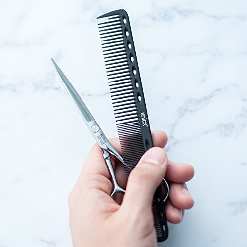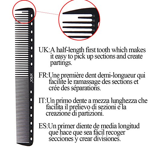 Xnicx 605 nero barbiere pettine,coda pettini, carbonio pettine professionale di styling capelli, pettine da taglio, stylist parrucchiere barbiere pettine