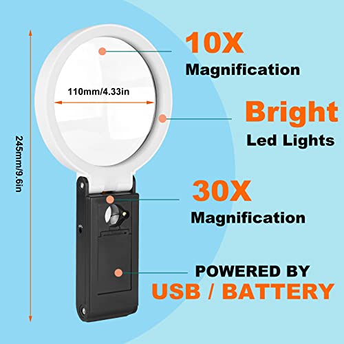 Xnourney Grande lente d'ingrandimento da 11 cm 25X 35X con luce e supporto, lente d'ingrandimento illuminata a LED portatile in piedi, lente d'ingrandimento pieghevole da lettura con per anziani