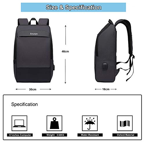 Xnuoyo Zaino per Portatili 17.3” Zaino Laptop Impermeabile di Ricarica USB,Zaino per PC Portatile da Borsa per Lavoro Scuola Viaggio Uomo e Donna (Nero)