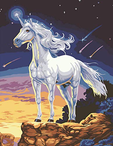 XNXQX Paint By Numbers Meteora Unicorno Bianco per Adulti E Bambini Vernice di Numero con Spazzole E Acrilico Pigmento Decorazioni Natalizie 40,6X50,8 Cm