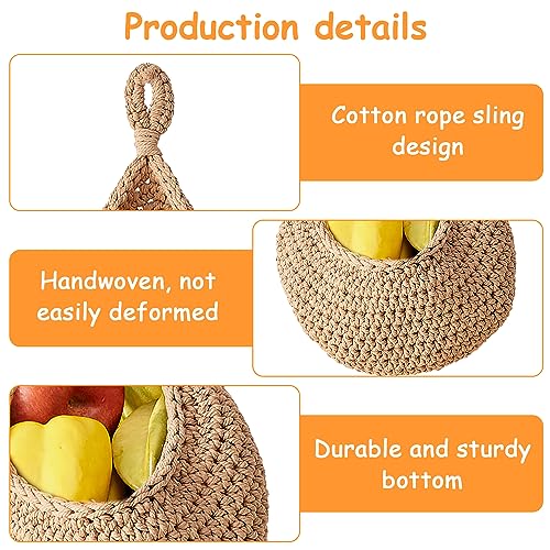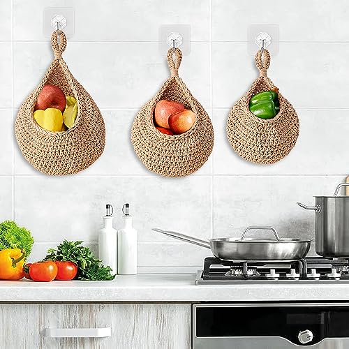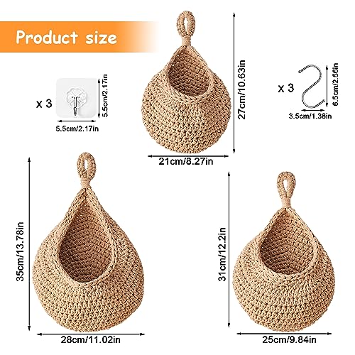 XNZMYN 3 Pezzi Cesto Portaoggetti Intrecciato Sospeso in Rete, Cestini Portaoggetti da Appendere Juta, Cesto di Frutta e Verdura Intrecciato, Cestino da Appendere per Frutta Cucina, Soggiorn