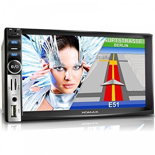 XOMAX XM-2VRSUN731BT Autoradio / Moniceiver / Naviceiver con navigatore GPS con cartografia europea + Funzione vivavoce Bluetooth con importazione rubrica telefonica + Display touch screen da 7'' / 18 cm con risoluzione HD, 800 x 480 pixel, formato 16:9 + Porta USB (fino a 128 GB!) + Slot per schede Micro SD (fino a 64 GB!) + Riproduzione multimediale: MPEG4, MP3, WMA, JPEG, ecc + Ingresso per telecamera retromarcia + doppio DIN 2 DIN + Telecomando, plancia e mascherina inclusi