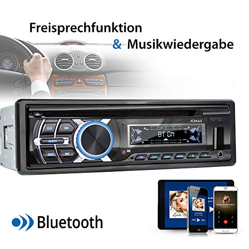 XOMAX XM-CDB624 Autoradio con Lettore CD I Bluetooth Vivavoce I RDS Radio Tuner I USB, Micro SD I 2x AUX I 7 Colori regolabili I 1 DIN