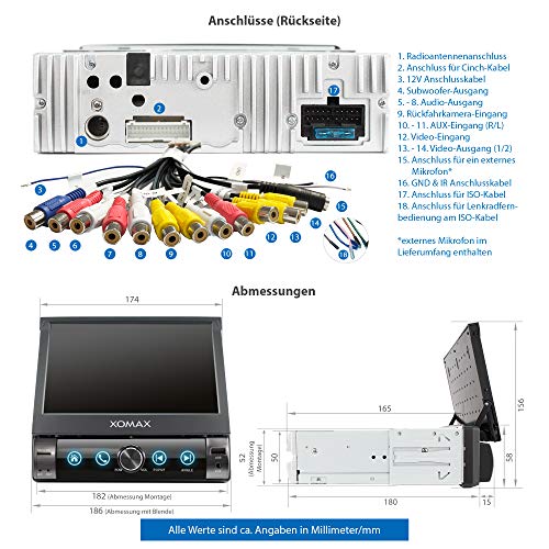 XOMAX XM-V762 Autoradio con mirrorlink, vivavoce bluetooth, schermo touch screen 7 pollici / 18 cm, RDS, USB, SD, AUX, 1 DIN