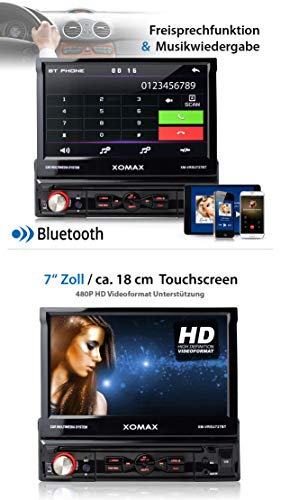 XOMAX XM-VRSU727BT Autoradio con Schermo Touch screen 18 cm / 7" HD I Bluetooth I USB, SD, RDS I Collegamenti per telecamera retromarcia e per subwoofer I 1 DIN