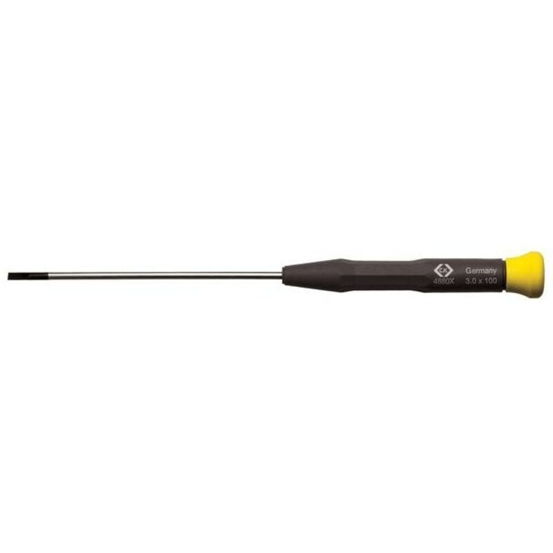 Dettagli tecnici Ambito di applicazione (cacciavite) Elettronica e meccanica di precisione Dimensione del prodotto, lunghezza 157 mm Forza Taglio Larghezza della lama 1.2 mm Lunghezza della lama 60 mm Materiale Acciaio al cromo vanadio molibdeno Proprietà del materiale cromato, brunito Tipo prodotto Cacciavite a taglio Cacciavite di precisione C.K a taglio 1,2x60 mm Cacciaviti DI PRECISIONE L'impugnatura dal design ergonomico con cappucci girevoli con incavi per un controllo ottimale del movimento di rotazione, anche con le coppie più basse 2) acciaio al cromo-vanadio di alta qualità per un'eccezionale resistenza e durata 3) punta su misura per le personalizzazioni e senza sbavature 4) non nero cromato, lame, evitare riflessi e scagliature di particelle cromate 5) con tappi di incavi per un facile riconoscimento Testo tradotto automaticamente. Punti di forza e dettagli CACCIAVITI DI PRECISIONE Manico realizzato in modo ergonomico con cappuccio girevole per facilità d'uso e controllo
