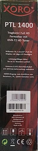 Xoro PTL 1400 Televisore portatile DVB-T / T2 da 35,5 cm (14 pollici) (FullHD, caricabatteria per auto 12-24V, batteria integrata, HDMI IN, antenna) grigio