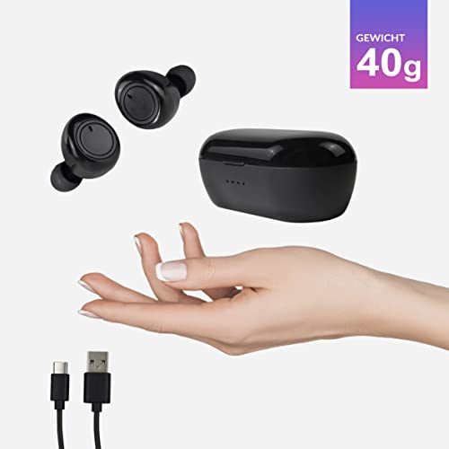 Xoro KHB 25 - Auricolari Bluetooth (BT 5.0, TWS, scatola di ricarica), colore: Nero