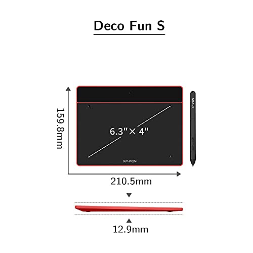 XP-PEN Deco Fun S - Tablet grafico a stilo passivo 8192 livelli, con inclinazione a 60°, 6 x 4 pollici, per dissinuare, imparare a distanza o giocare OSU, colore: Rosso Carminio