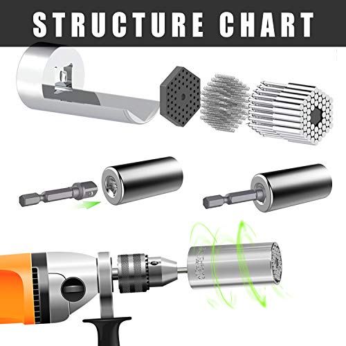 Misura universale: questa chiave universale può essere regolata immediatamente per catturare la maggior parte dei dadi metrici, i dadi ad aletta, i dadi rotti, i dadi isolati, i dadi ad anello, i dadi quadrati, i dadi esagonali, ecc. Dotato di un adattatore per trapano, è facile da collegare alla maggior parte dei trapani elettrici. Cacciavite elettrico e chiave a cricchetto manuale.
