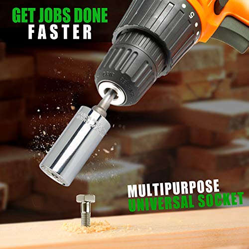 Design speciale: il design unico di questa presa universale può essere adattata automaticamente a qualsiasi dimensione o forma. Si adatta a bulloni, dadi e bulloni standard con dimensioni da 1/4" a 3/4" e metriche da 7 mm a 19 mm e soddisfa tutte le vostre esigenze. Compatto e portatile, può essere facilmente trasportato ovunque.